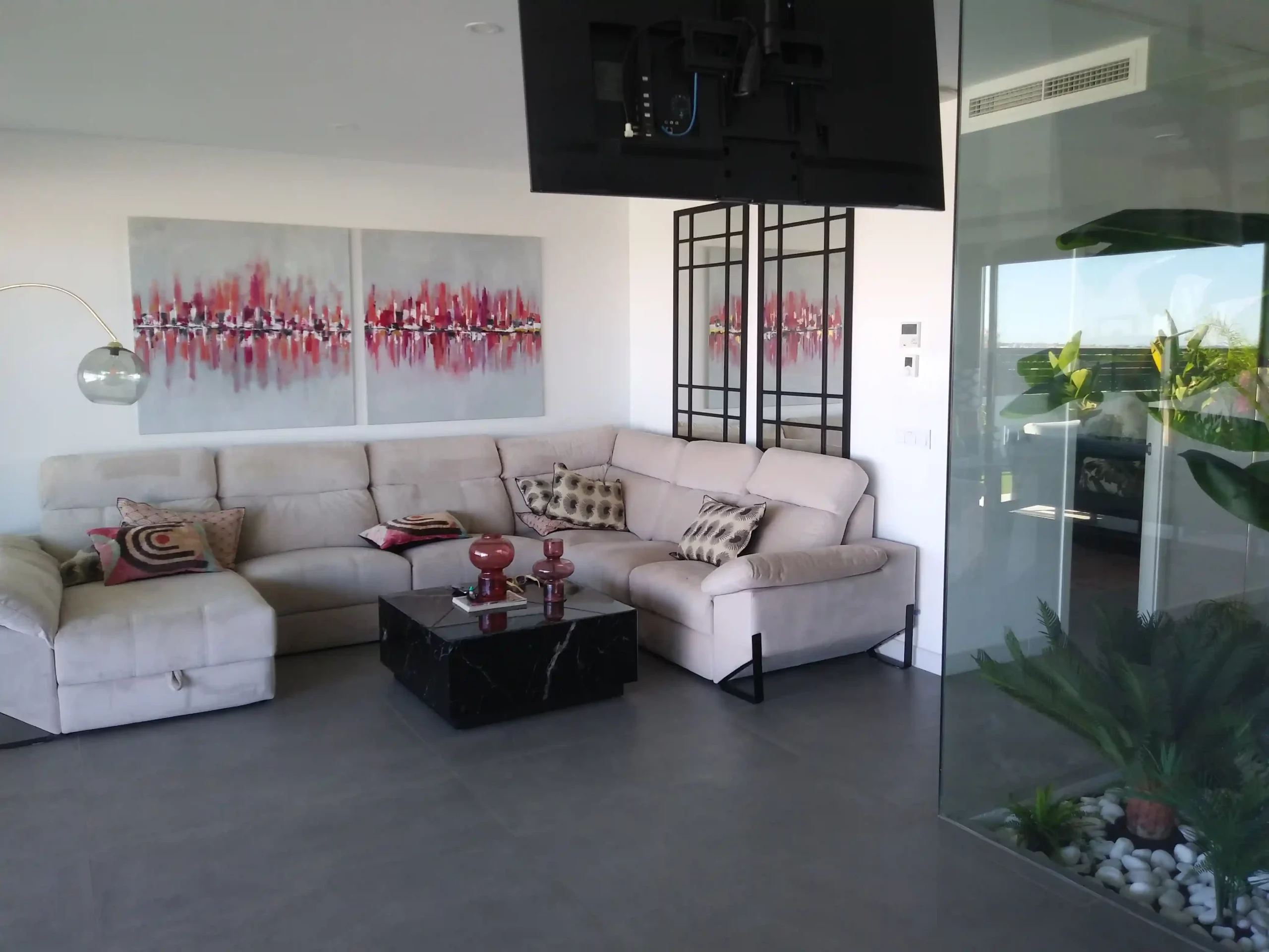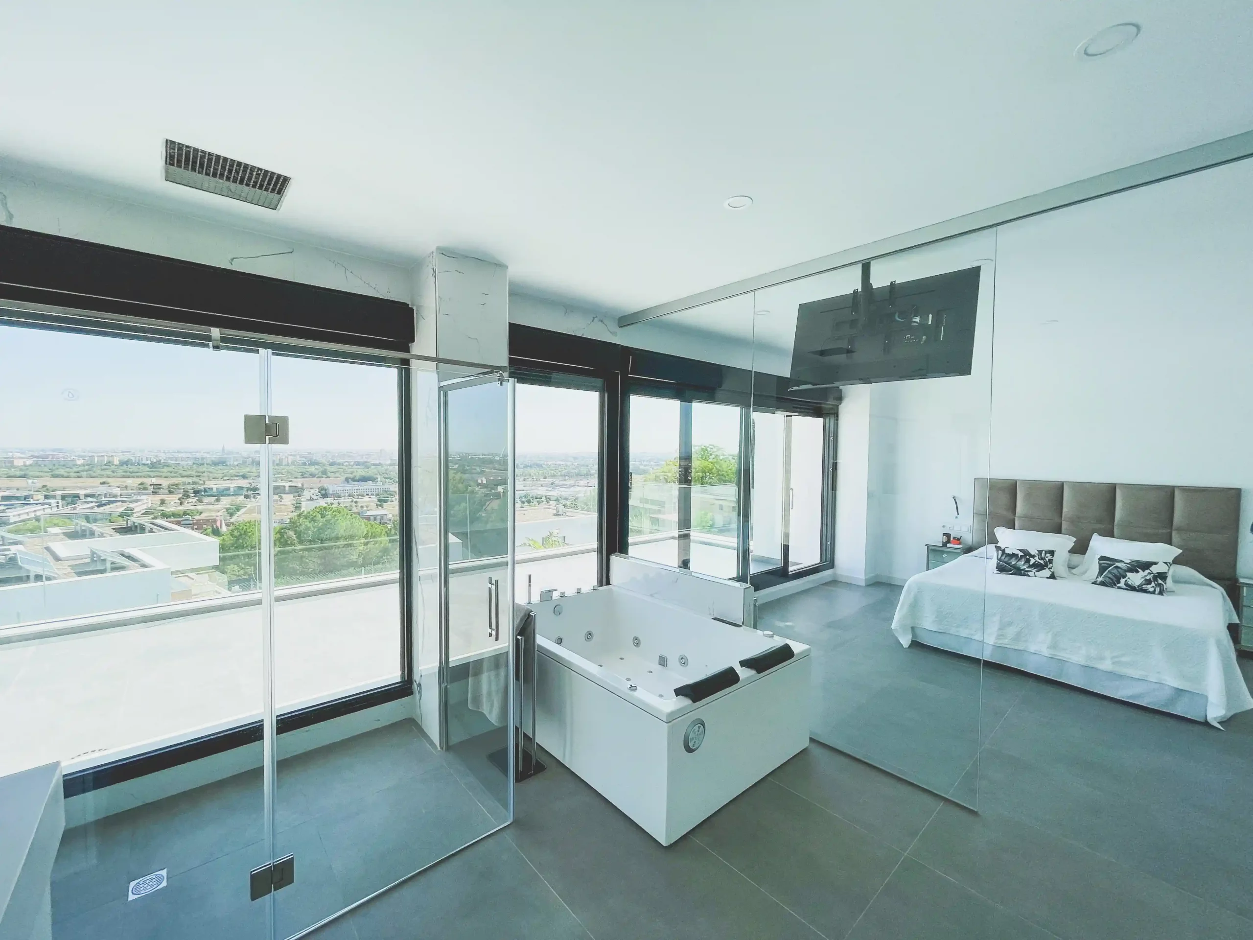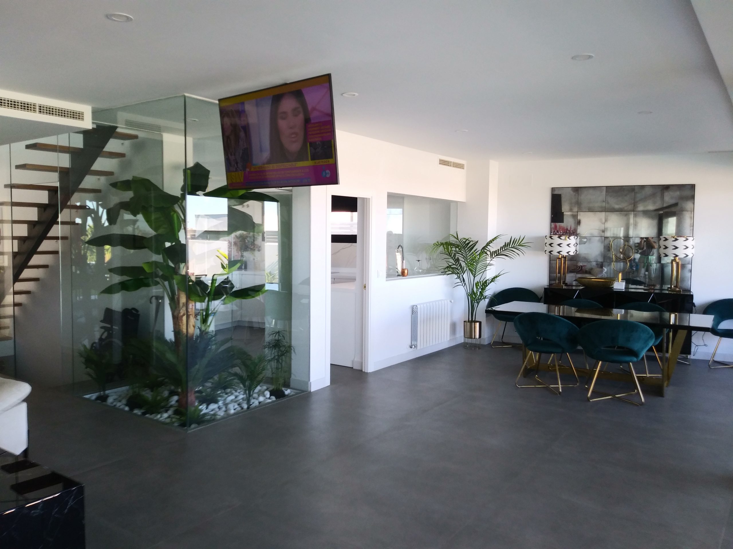 Vivienda que se abre totalmente a su lado Este, donde encuentra unas espectaculares vistas de Sevilla, en dos plataformas horizontales.