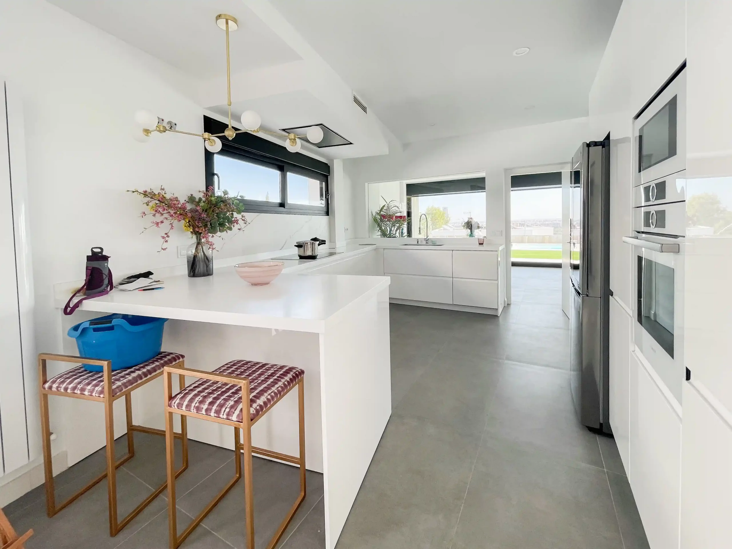 De materiales nobles como la madera e imitaciones a piedra en porcelánicos, dotamos a los interiores de un aspecto cálido, con espacios de gran calidad.